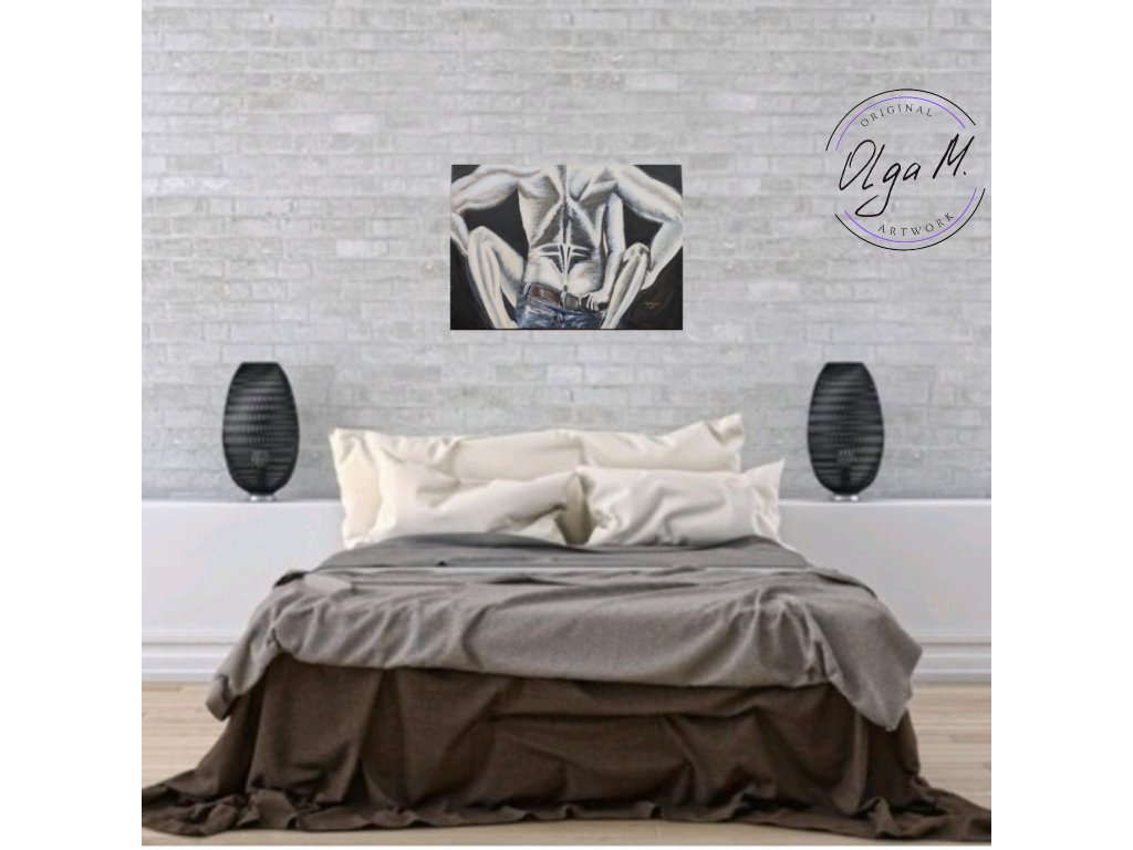 Emoce, vášeň, vzájemná přitažlivost, touha a nezkrotnost, všechny tyto emoce jsem měla, když jsem malovala tento obraz, a snažila jsem se tyto pocity do toho vložit. Tohle dílo krásně západně do Vaší ložnice a nebo do moderního interiéru.
